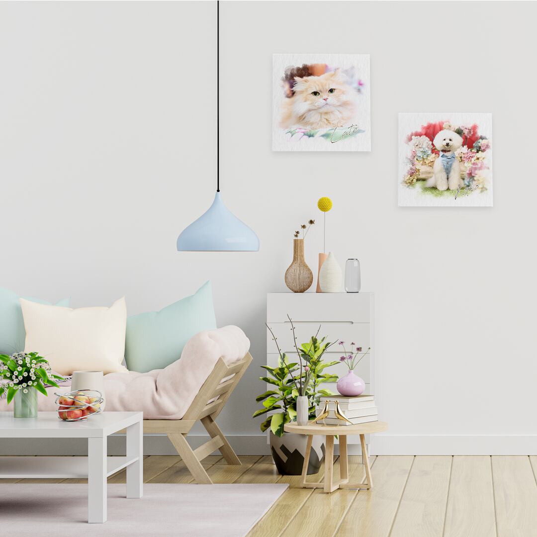 あなたのペットのお写真をイラスト風にデザインしたおしゃれなアート風キャンバスを作成致します。
